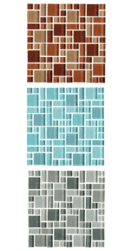 Мозаика изображенная справа на рисунке(сверху вниз): VOLTA(GW-VTAMOSRM), ANGELINA(GW-ANGMOSRM) и CYPRESS(GW-CYPMOSRM). Мозаика этой коллекции выпускается в размере 300 х 300 х 10 мм.